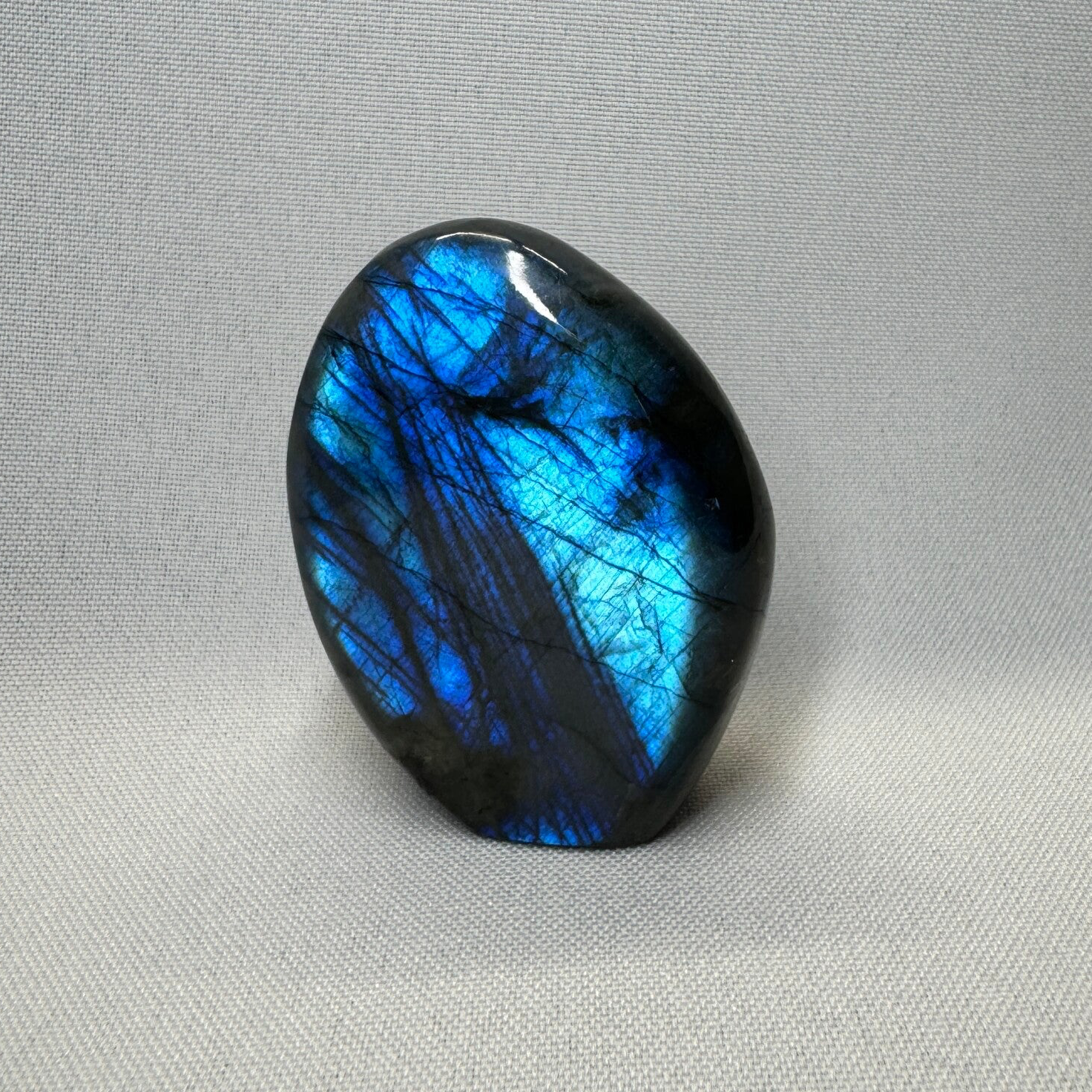 Labradoriet freeform van 5cm hoog, 3,5cm breed en 74 gram.